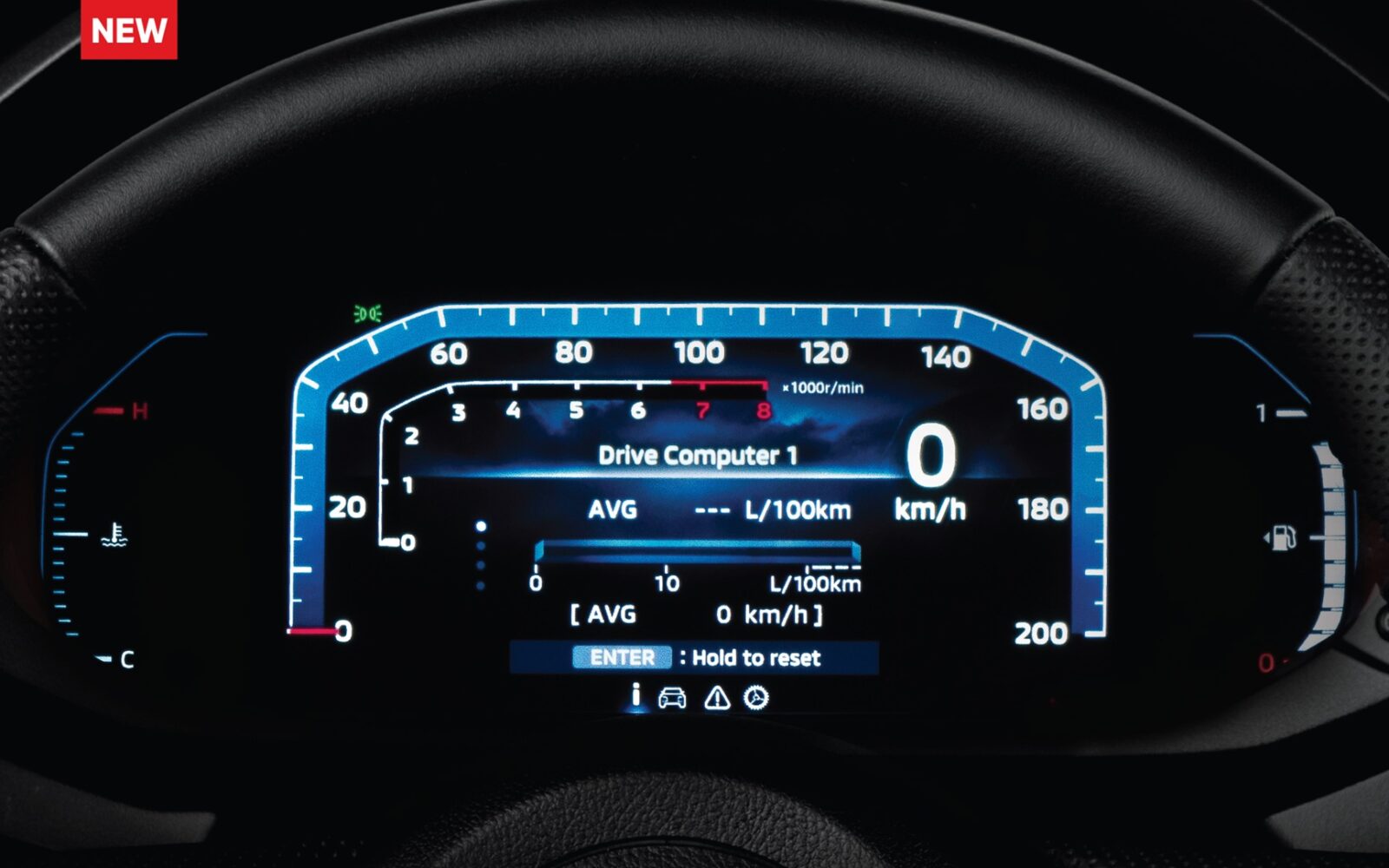 Cụm đồng hồ kỹ thuật số hoàn toàn mới, hiển thị sắc nét và hiện đại, giúp bạn theo dõi thông tin lái xe dễ dàng.